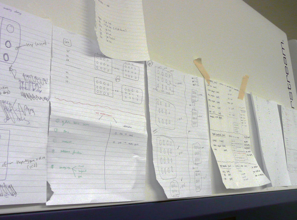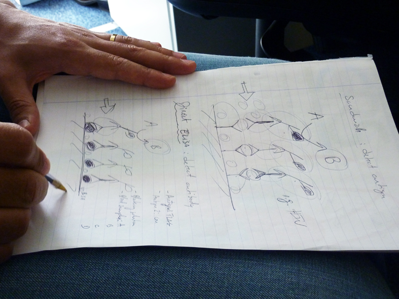 Initially, designers were introduced to the fluid handling device and the principles of immunoassays, a complex process with scientific underpinnings. Given its intricacies and non-observable aspects, designers conducted an observation day to grasp the practicalities and associate theoretical knowledge with real-world applications. This observation day provided invaluable insight, enabling designers to comprehend each step and the scientific principles involved. Scientists utilised a diagram with scientific symbols to explain non-observable aspects of the process, aiding designers’ understanding.
