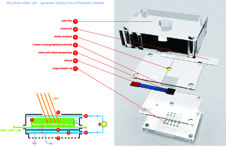 The designers visited the scientist’s laboratory to observe his latest devices, which inspired them to develop a functioning prototype of the “algae solar panel” concept from their brainstorming session. Although it did not generate as much energy as anticipated upon completion and testing, it unexpectedly facilitated the measurement of water produced during the biophotovoltaic process, leading to empirical confirmation of water production and proof of the technology’s potential for desalinating seawater. This demonstrated the value of collaboration between designers and scientists, sometimes resulting in unforeseen and beneficial outcomes.